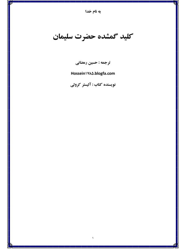 ترجمه ی فارسی کتاب کمیاب کلید گمشد ه ی سلیمان از الیستر کرولی